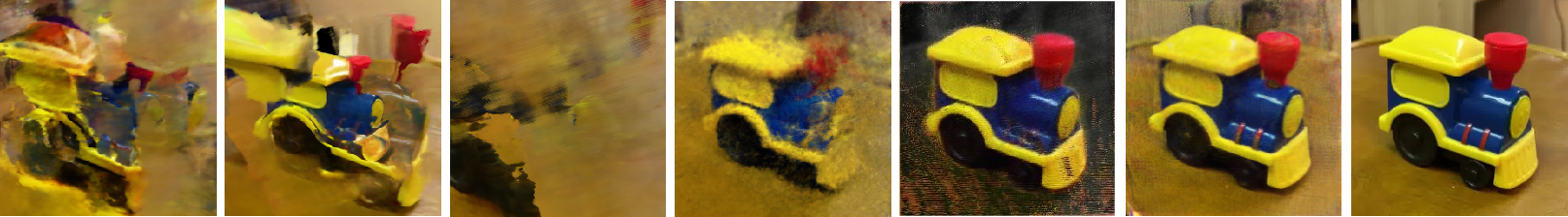 | RegNeRF | FreeNeRF | FlipNeRF | DiffusioNeRF | SparseFusion | Ours | Ground Truth |
